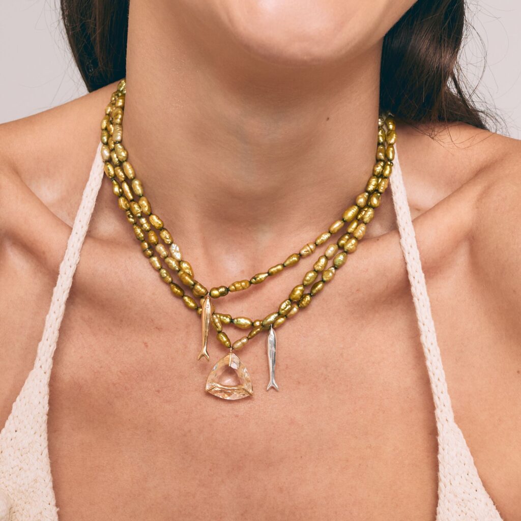 Colar Celine em Prata de Lei, Pérolas e Quartzo