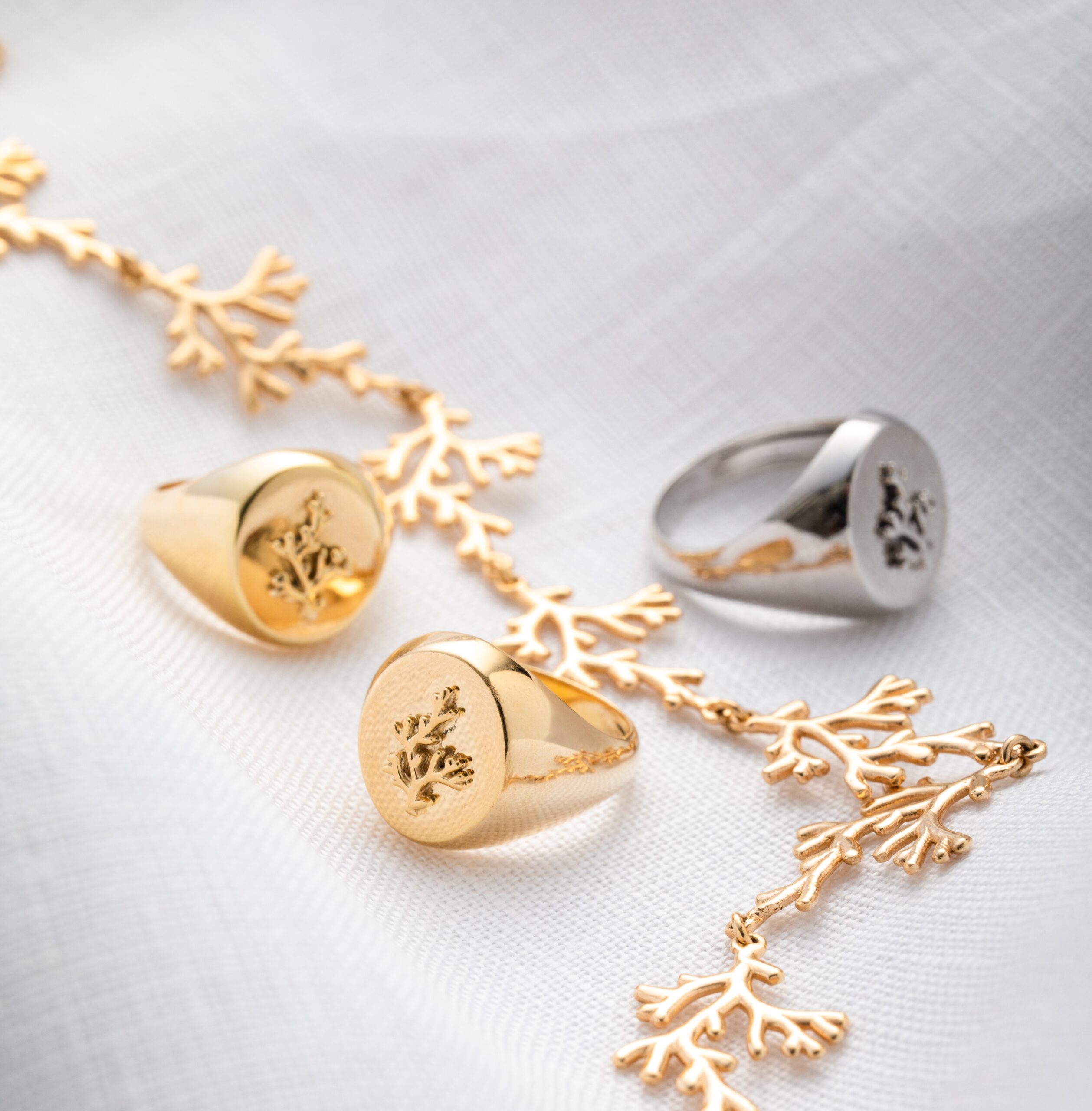 Todas as nossas peças douradas recebem uma espessa camada de Ouro 18K (10 milésimos) e as prateadas uma camada de Ródio. Ambos metais nobres que garantem cor, resistência e mais brilho às joias.