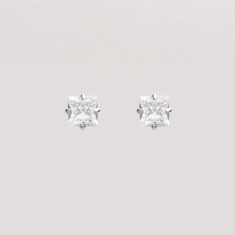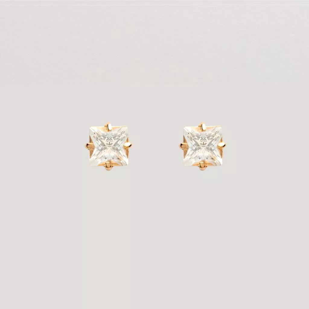 Brinco Solitário Quadrado com Corrente