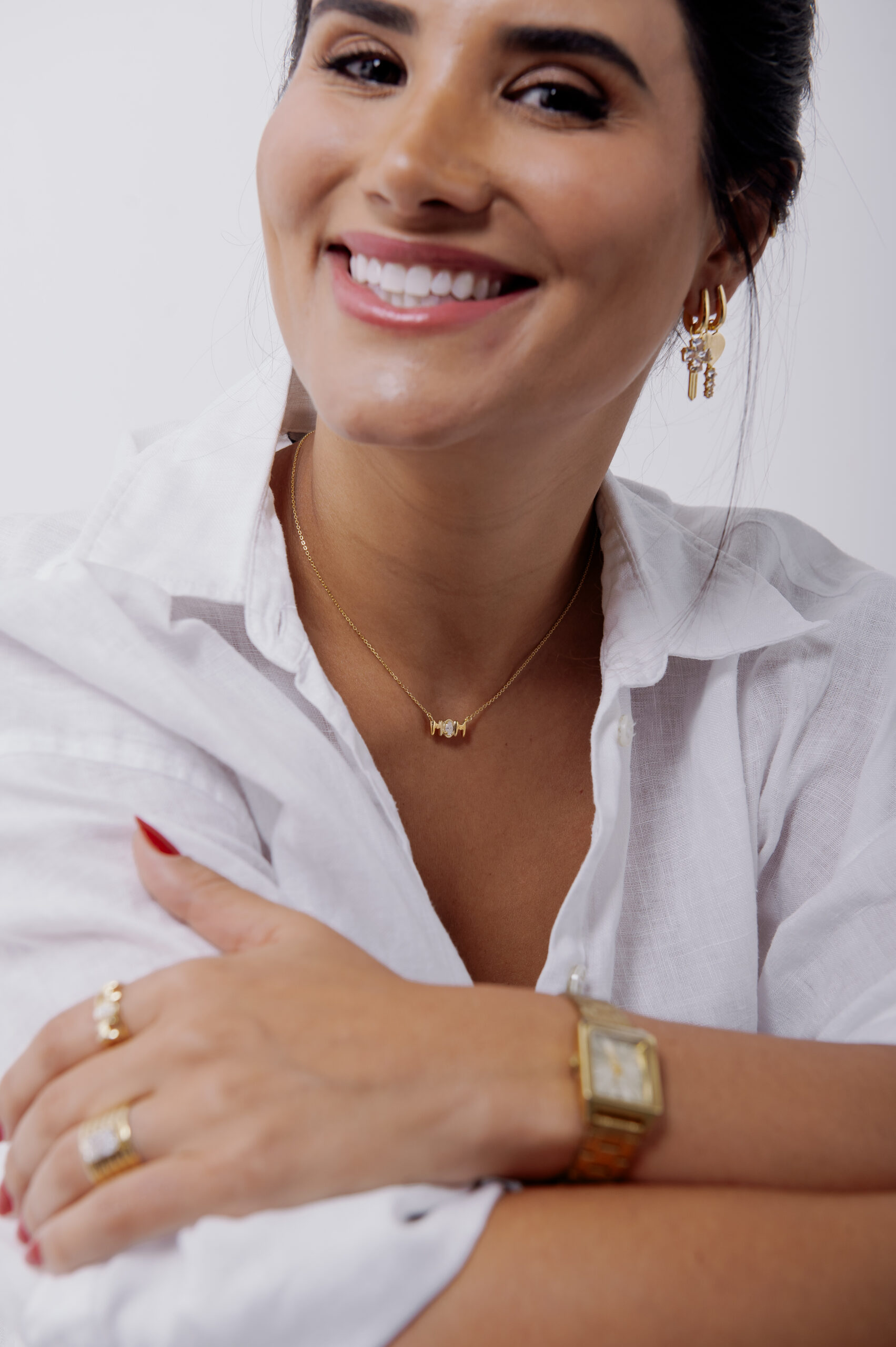 Todas as nossas peças douradas recebem uma espessa camada de Ouro 18K (10 milésimos) e as prateadas uma camada de Ródio. Ambos metais nobres que garantem cor, resistência e mais brilho às joias.