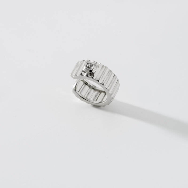 O Piercing possui frisos simétricos como textura e um Topázio Branco que pontua elegantemente a peça.