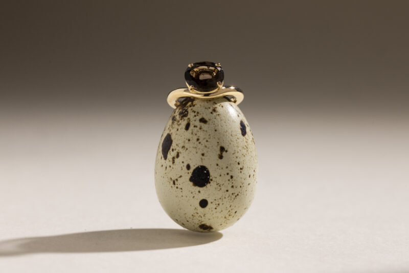 Anel Solitário Oval Sylvie em Prata de Lei e Quartzo Fumê